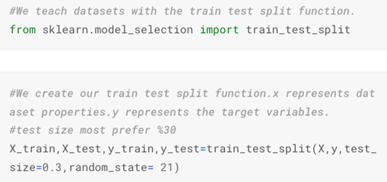 X_train,X_test,y_train,y_test=train_test_split(X,y,test_size=0.3,random_state= 21)
